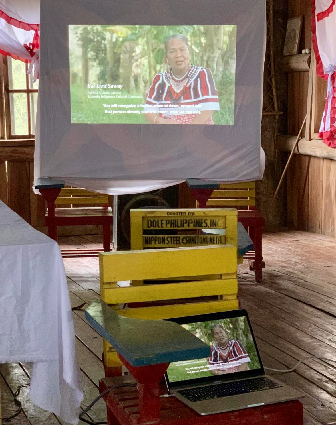 This documentary film follows Dr. Grace Nono as she visits her teachers of chant in Mindanao these last two decades. These teachers are Talaandig Chieftain and epic chanter Datu Migketay Victorino in Bukidnon; T’boli epic chanter and tau m’ton bu (ritual specialist) Mendung Sabal in South Cotabato; Agusanon-Manobo baenud-uman Bae Angela Placido in Agusan del Sur; and Blaan chanters Elia Capeon and her elders in Sarangani. Directed by Bagane Fiola, with the support of Dr. Luke Negri, Dr. Martin Cohen, the Tao Foundation for Culture and Arts, and Origane Films, this documentary film explores the current state of ancestral lands and songs, the relationships between the two, the ethics of knowledge transfer, and other related concerns.