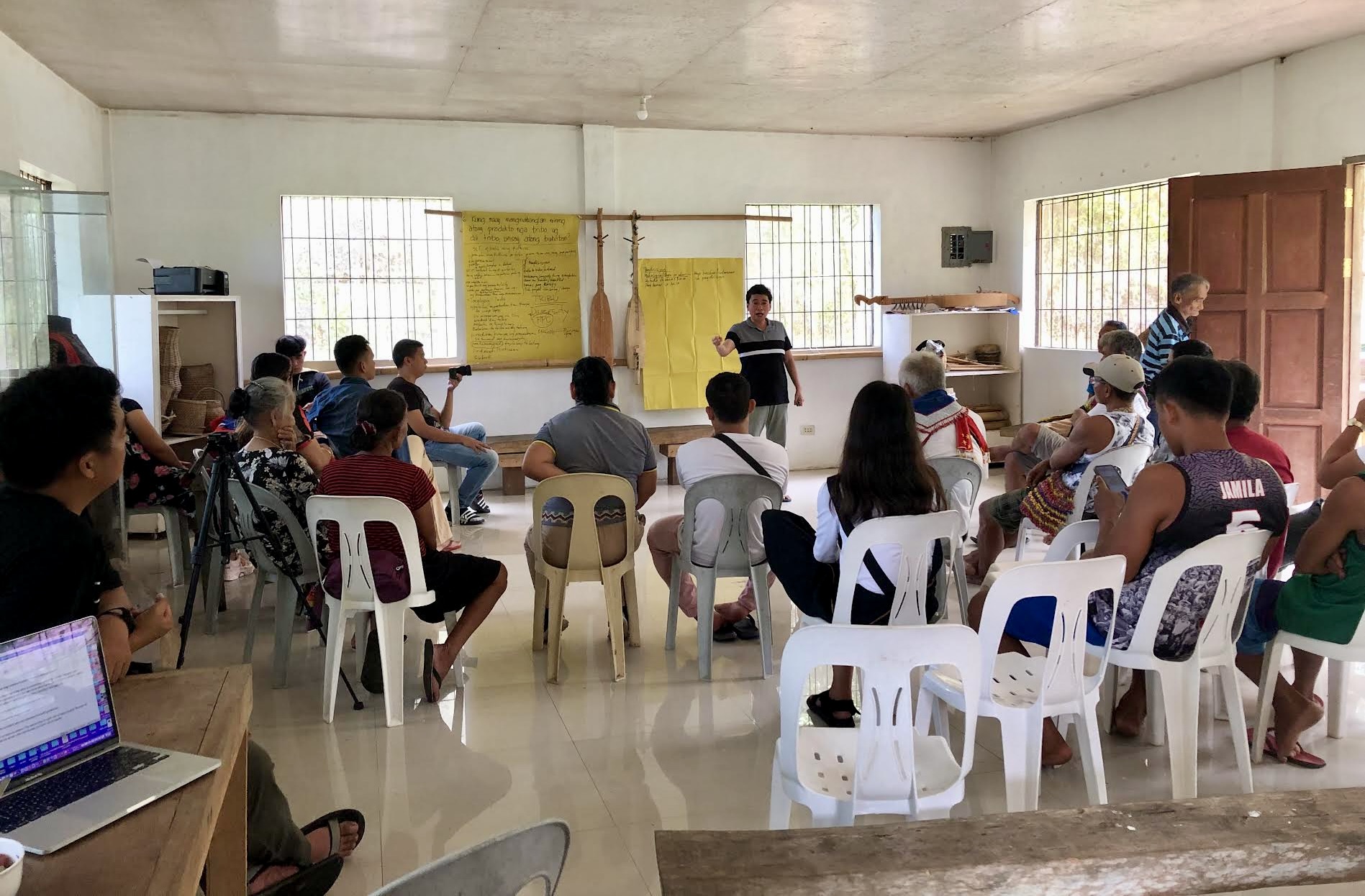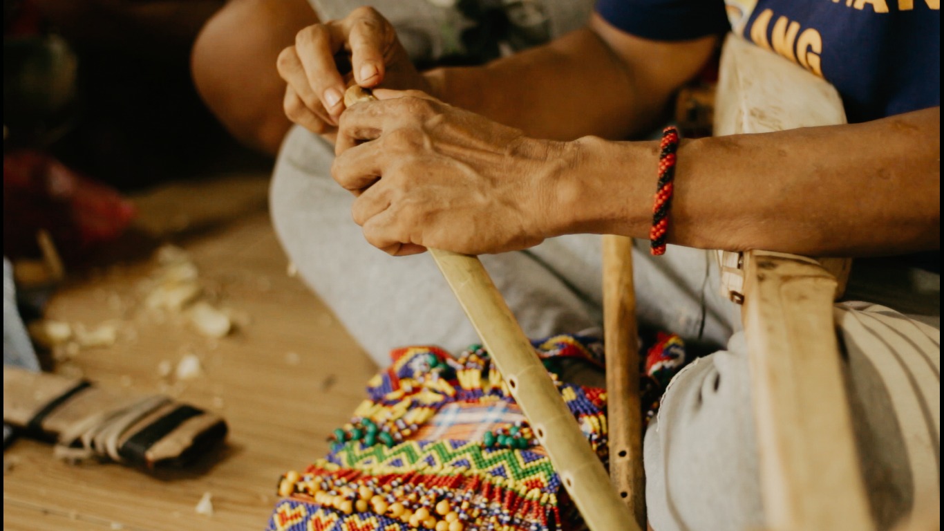 When the National Commission for Culture and Arts called for proposals to enhance and revitalize Philippine traditional music instruments in 2021, the Tao Foundation, in cooperation with partner organization PASAKK and a number of Agusanon-Manobo indigenous leaders, namely: Datu Malinoglinog Helario Bebero of Loreto, Bae Manyaguyad Lucy Rico of Esperanza, Becky Barrios of Bunawan, and Polding Tawide of La Paz gathered to make a plan. When the project was approved, professional luthier Adolfo Timuat came to La Paz to collaborate with the makers of the Kudlong (2-string lute), Kogot (fiddle), Takumbo (struck zither), Sayuroy (plucked zither), Kobing (jaw’s harp), Paendag (long bamboo mouth flute), Lantuy (short bamboo mouth flute), and Gimbae (double-headed skin drum) in finding ways to enhance the as recommended by the NCCA. The revitalized musical instruments are now being taught in the Agusanon-Manobo Schools of Living Traditions in Bunawan, La Paz, and Esperanza.